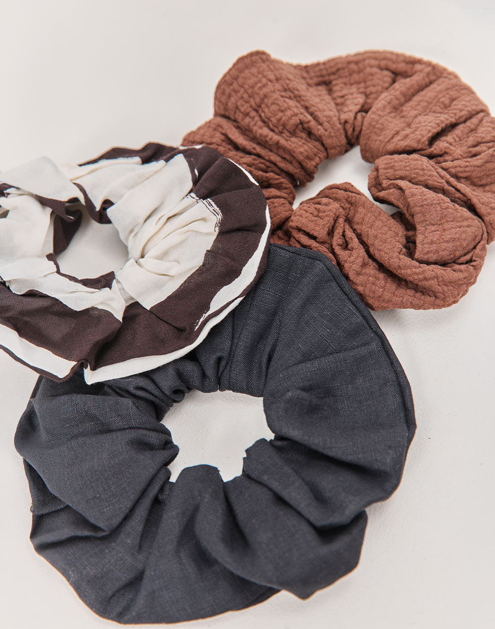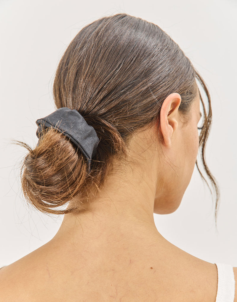 לאסוף את השיער בשיא בסטייל עם סקראנצ'י גומיה לשיער עשויה 100% פשתן רך ונעים.