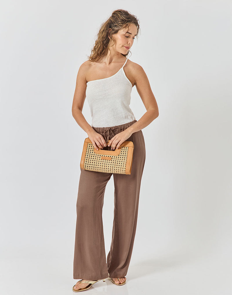 ראטן משולב עור קאמל Clutch